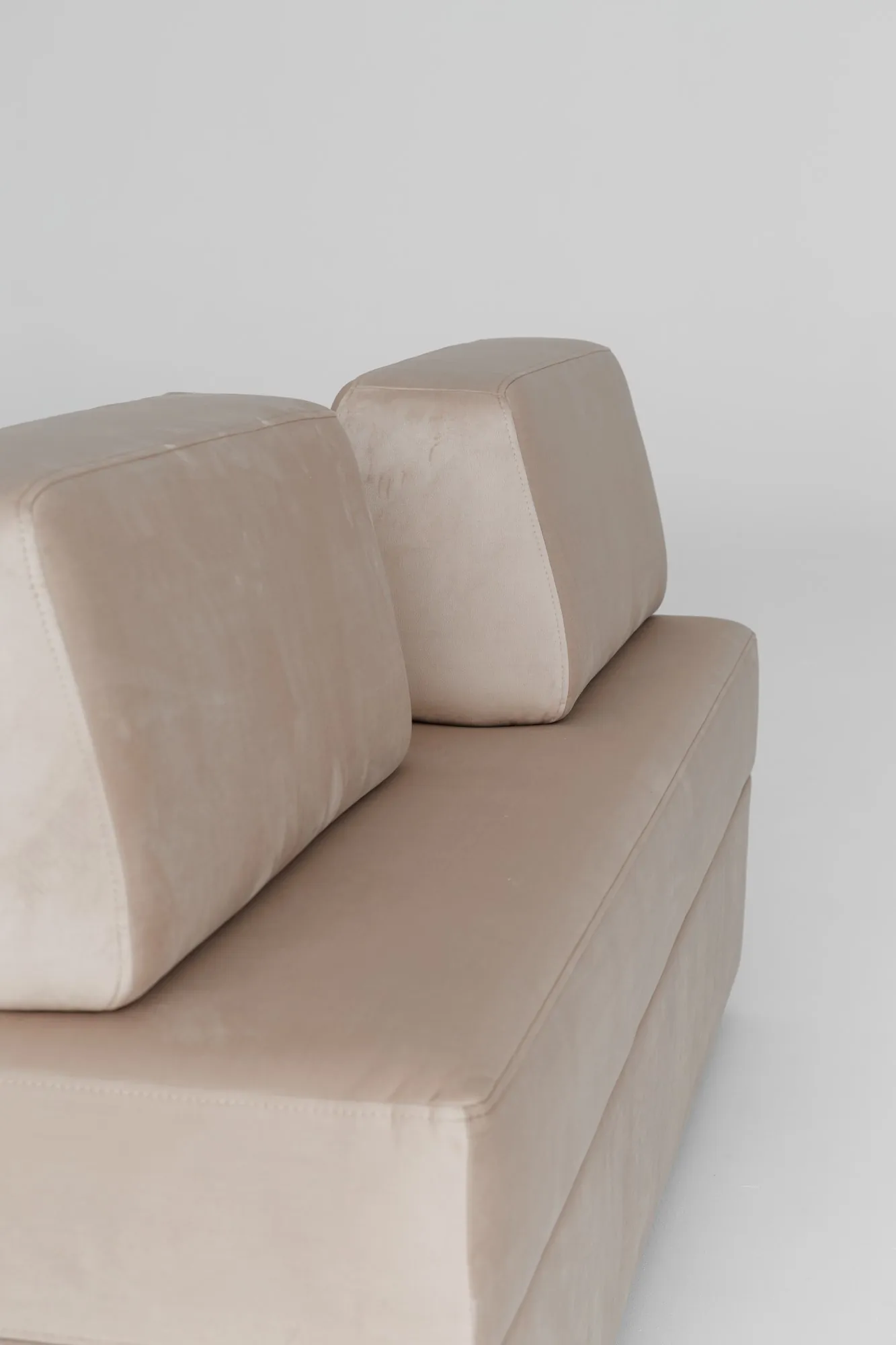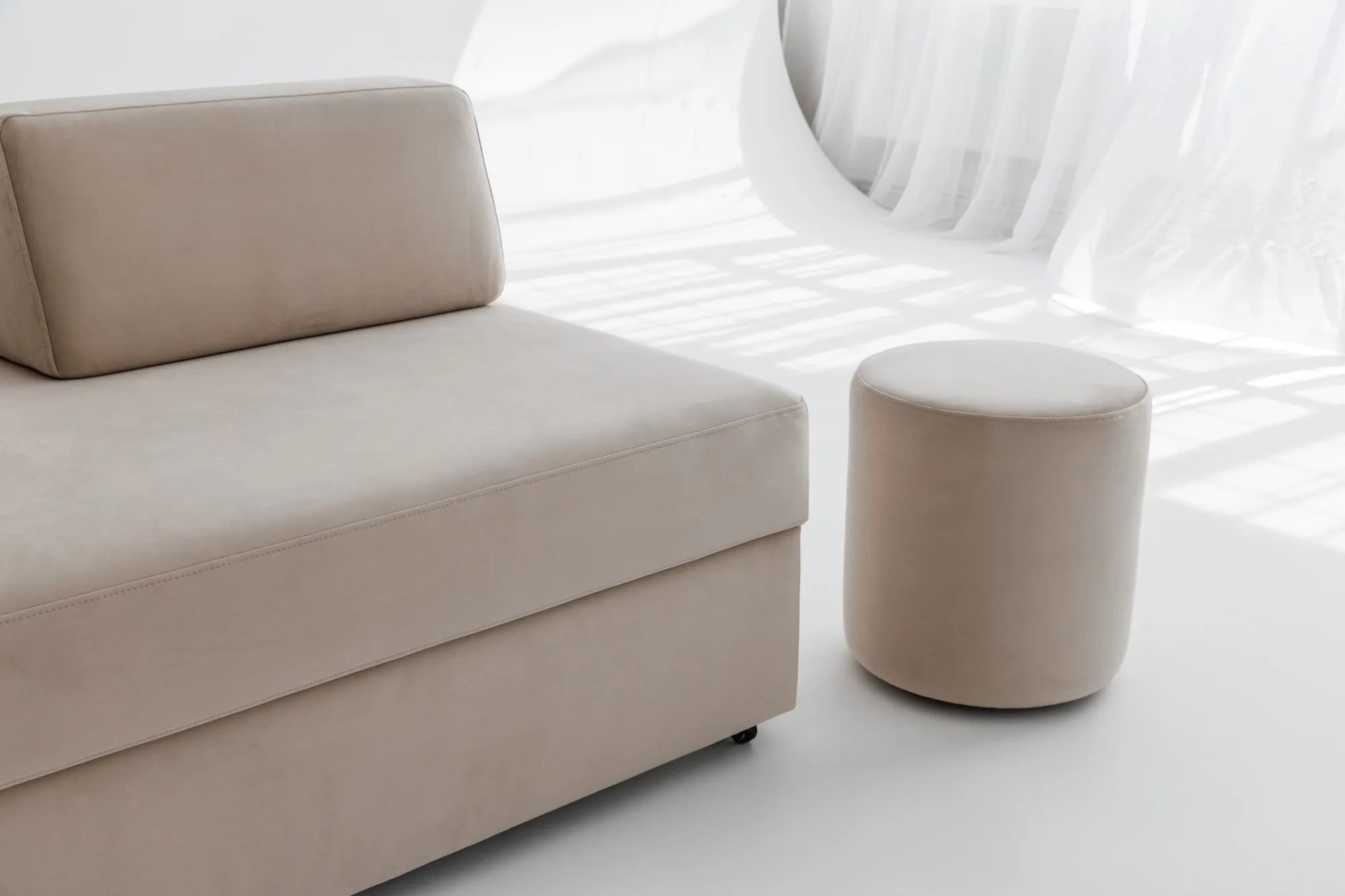 • Tapițeria catifelată în nuanță bej oferă un aspect elegant și un confort tactil deosebit.