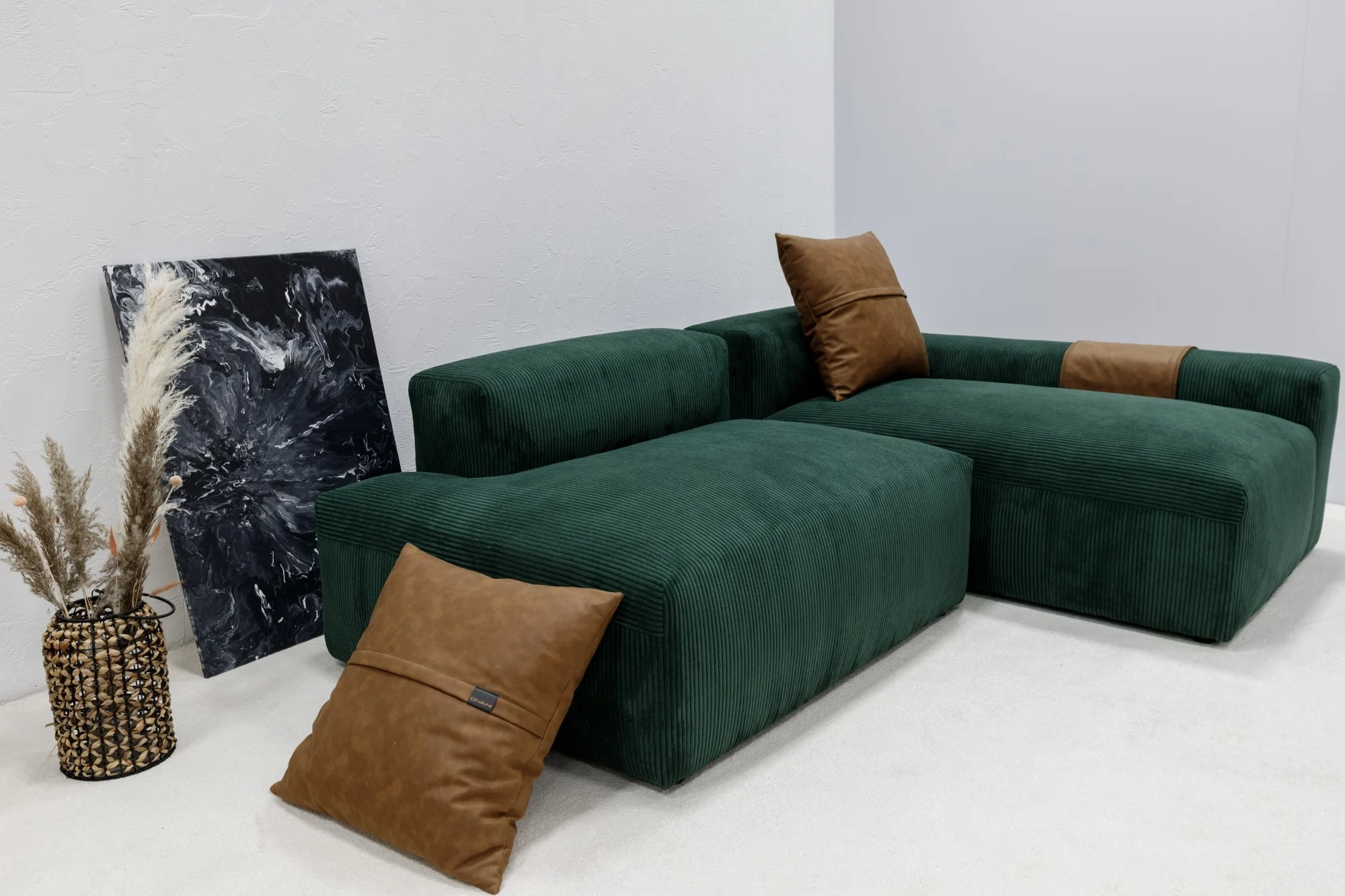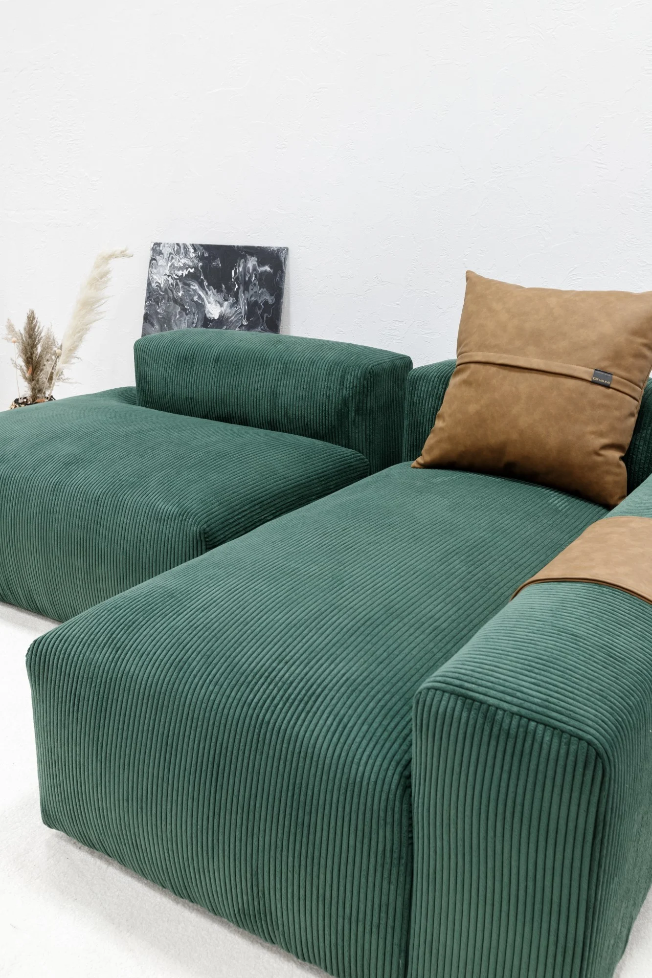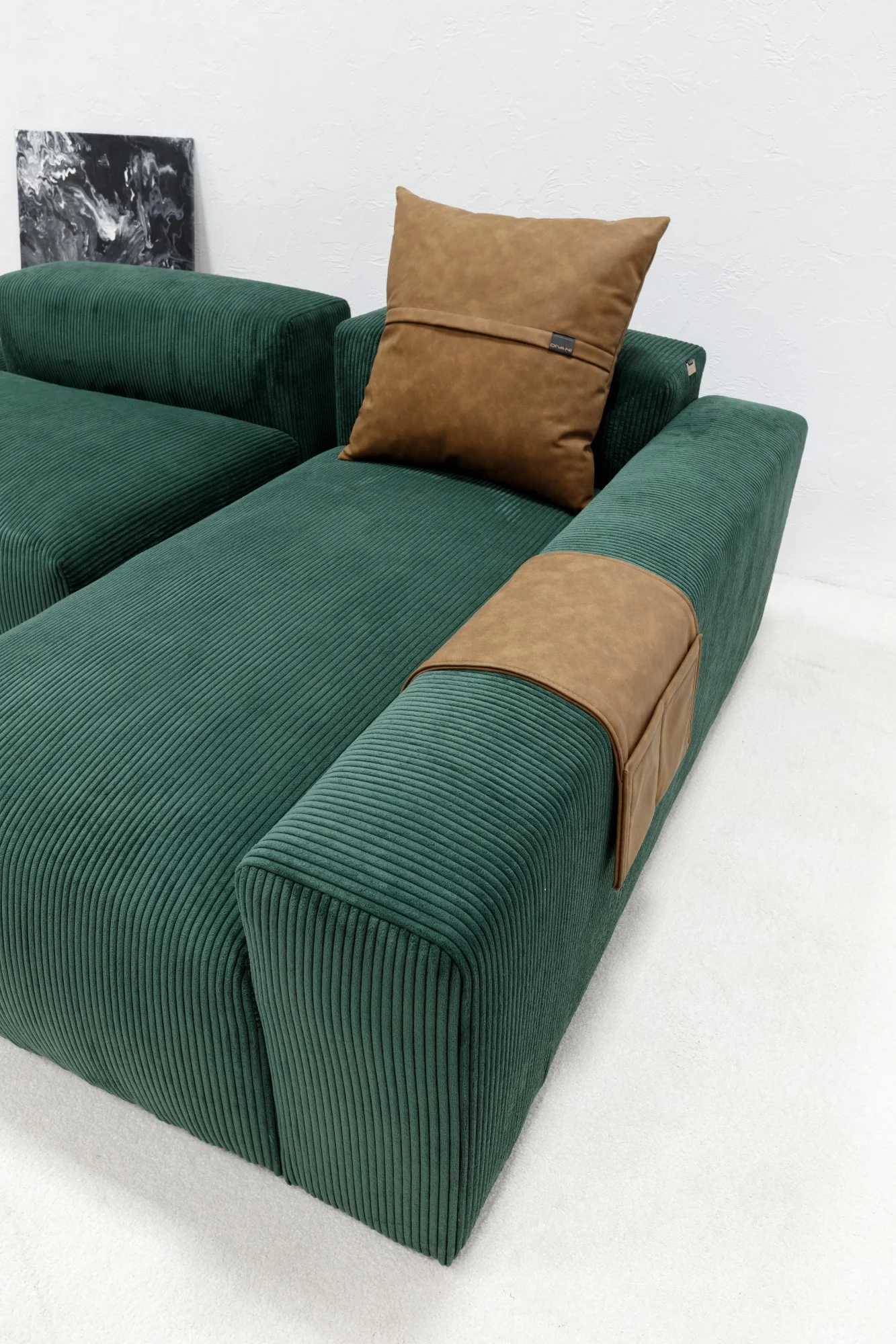 - Culoare sofisticată verde-smarald în combinație cu accente maro din piele ecologică.