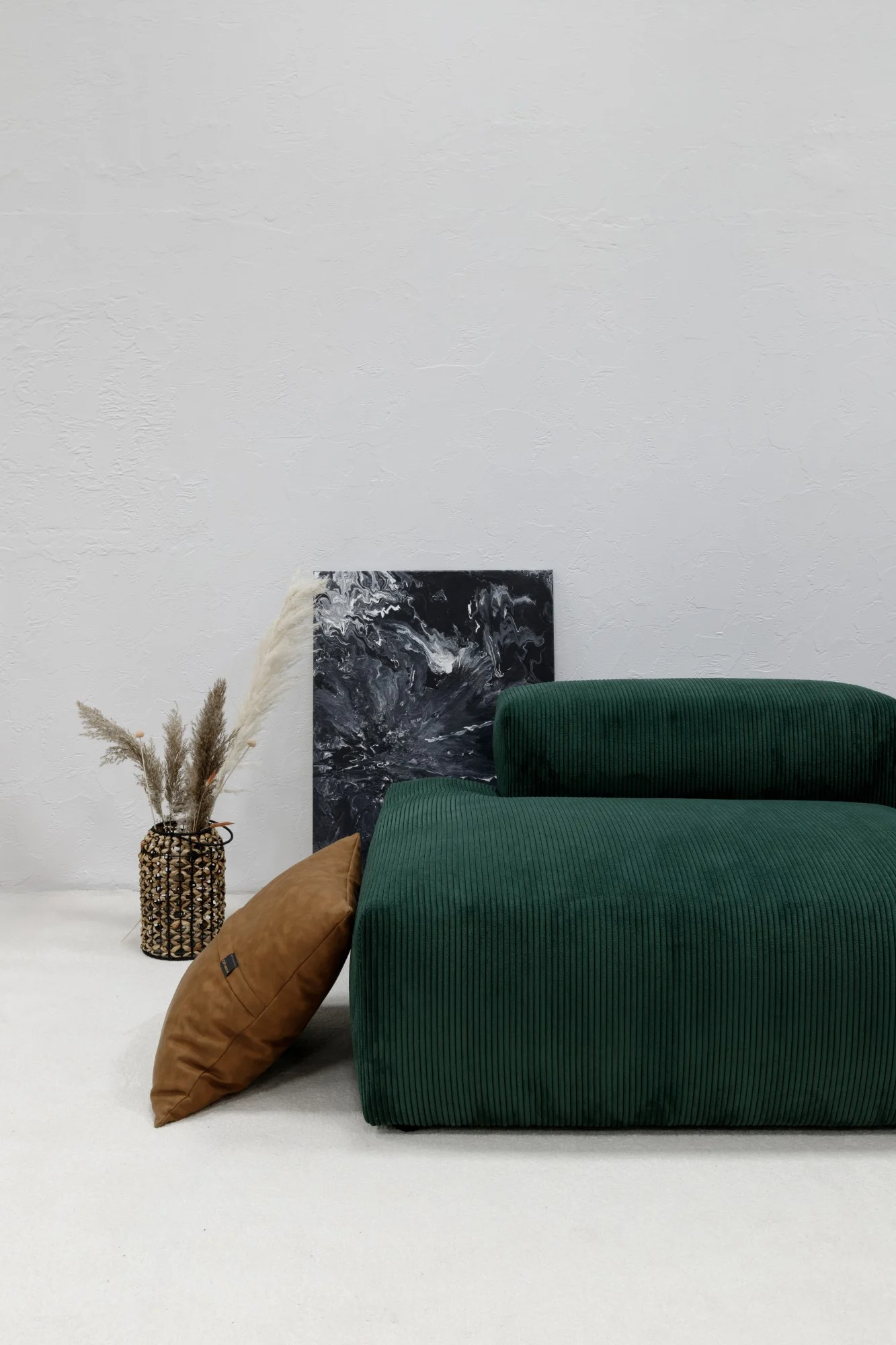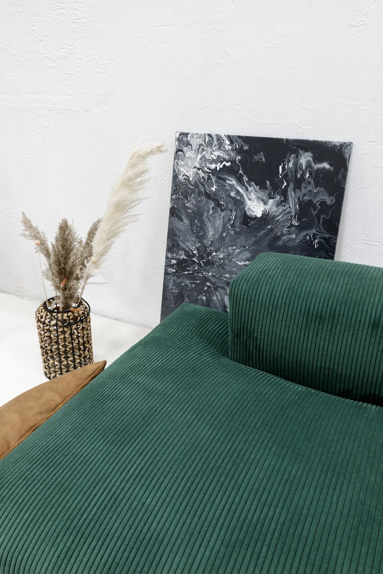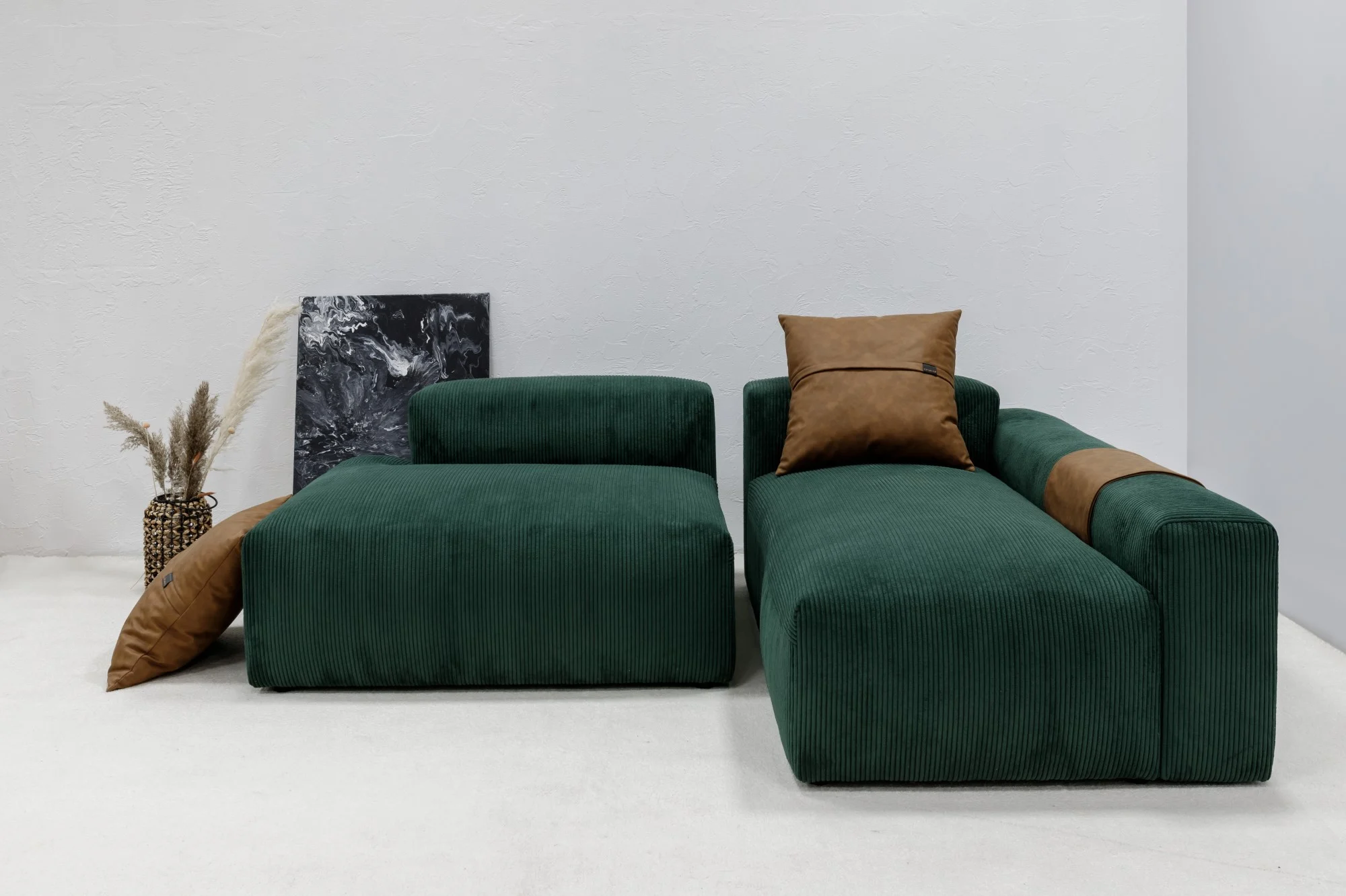- Culoare sofisticată verde-smarald în combinație cu accente maro din piele ecologică.