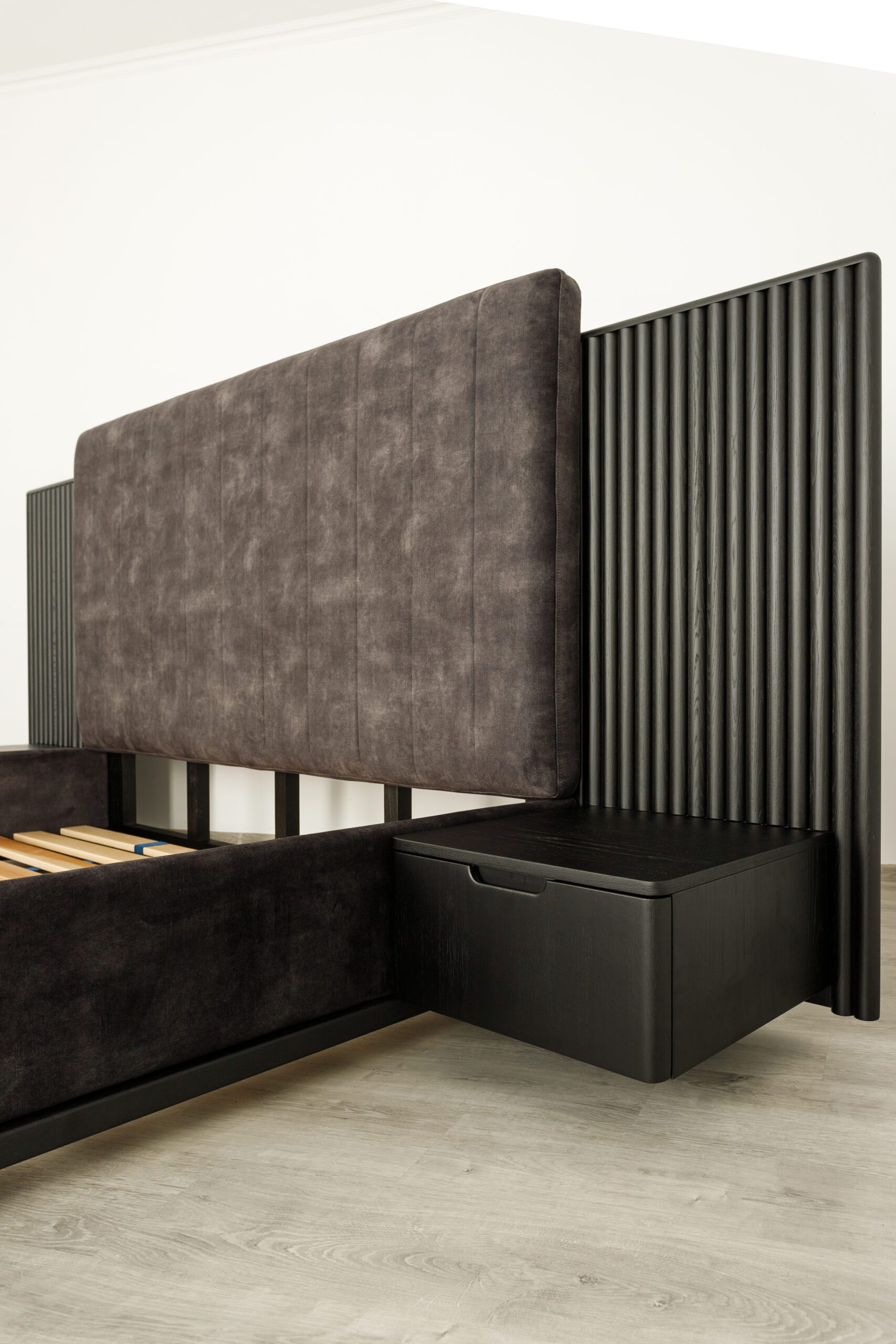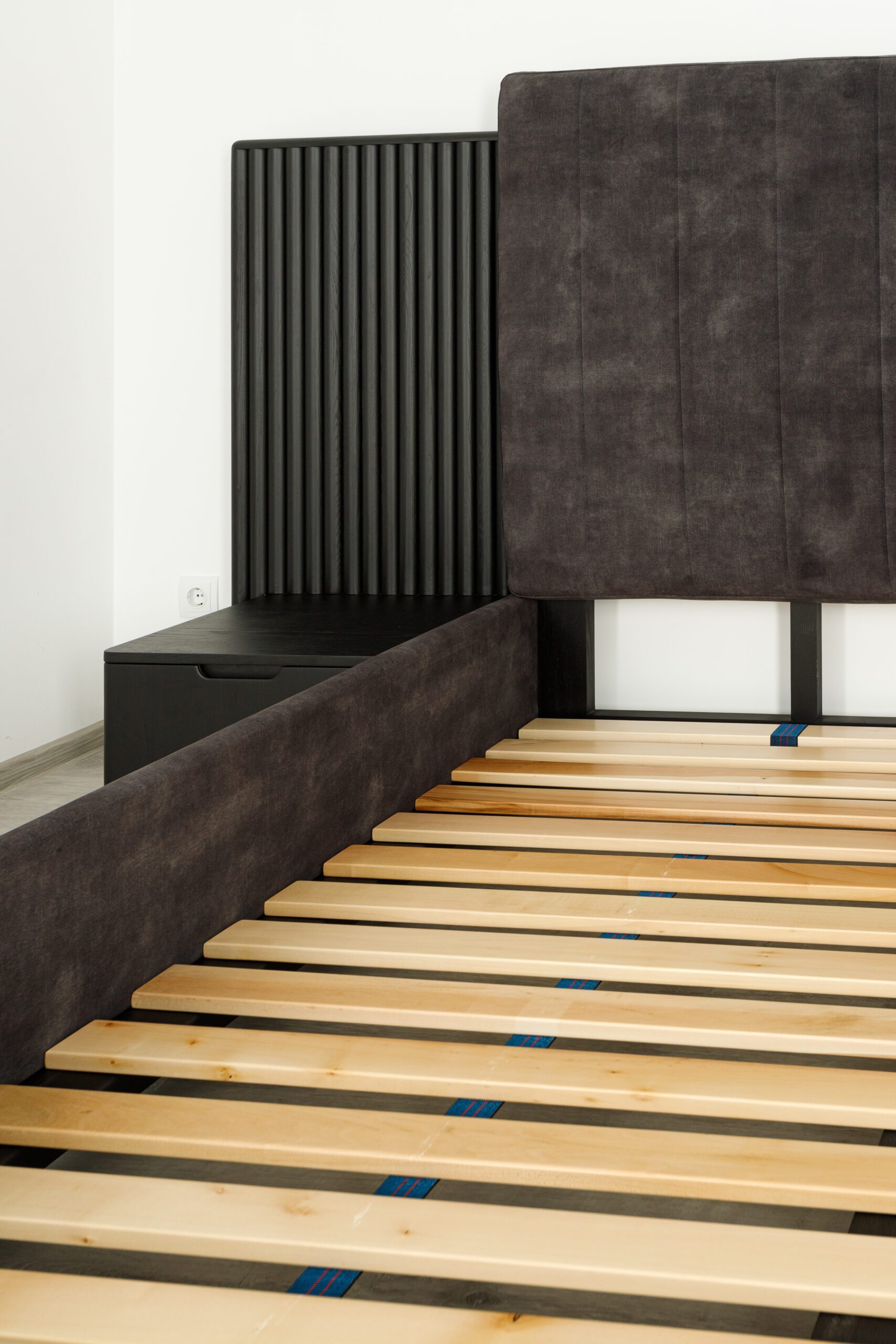 Construcția sa solidă garantează un somn odihnitor, în timp ce frumusețea sa subtilă îmbunătățește atmosfera spațiului tău, făcându-l piesa centrală perfectă pentru sanctuarul dormitorului tău.