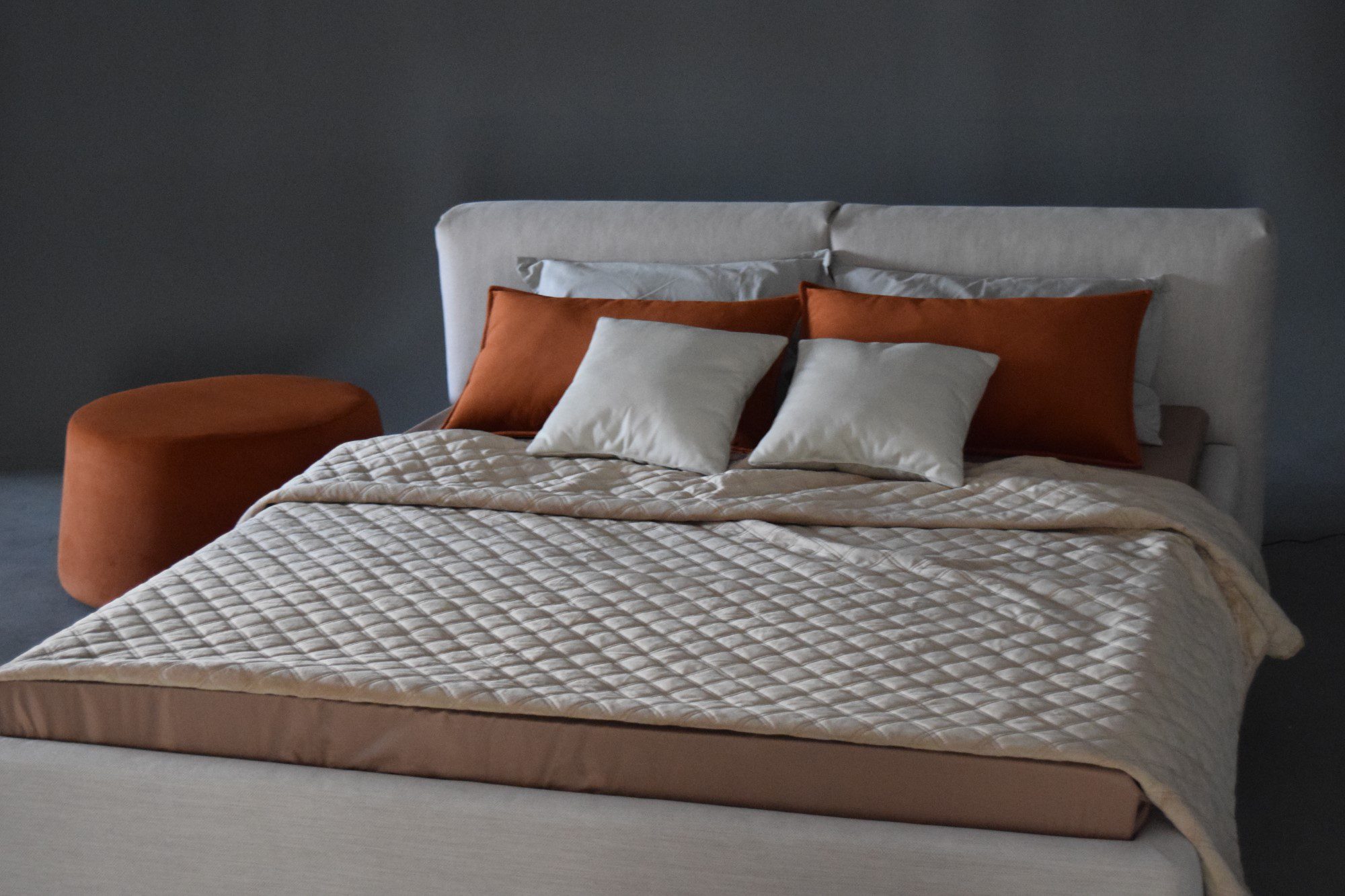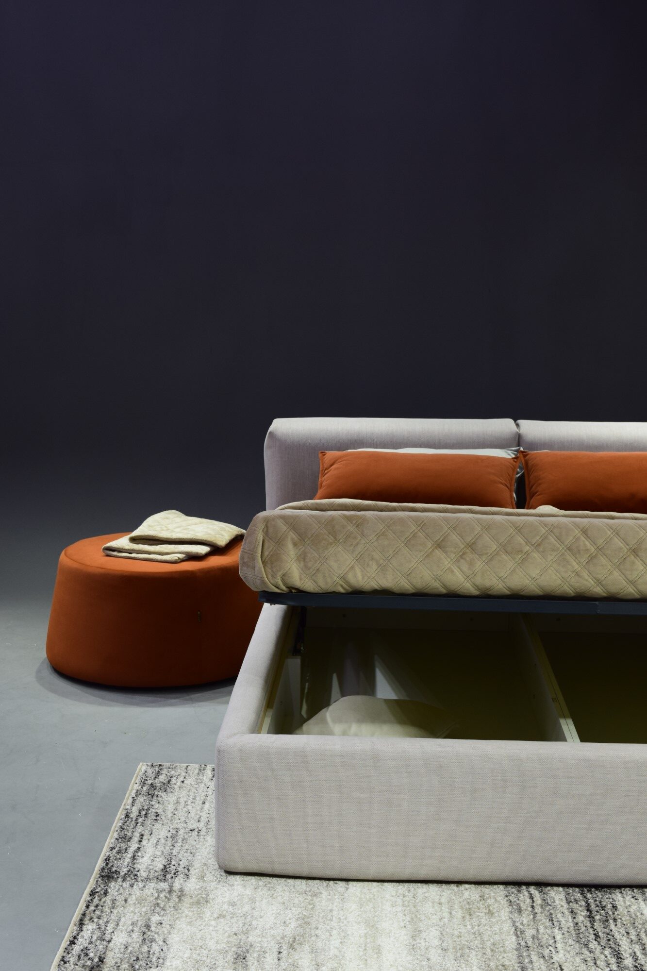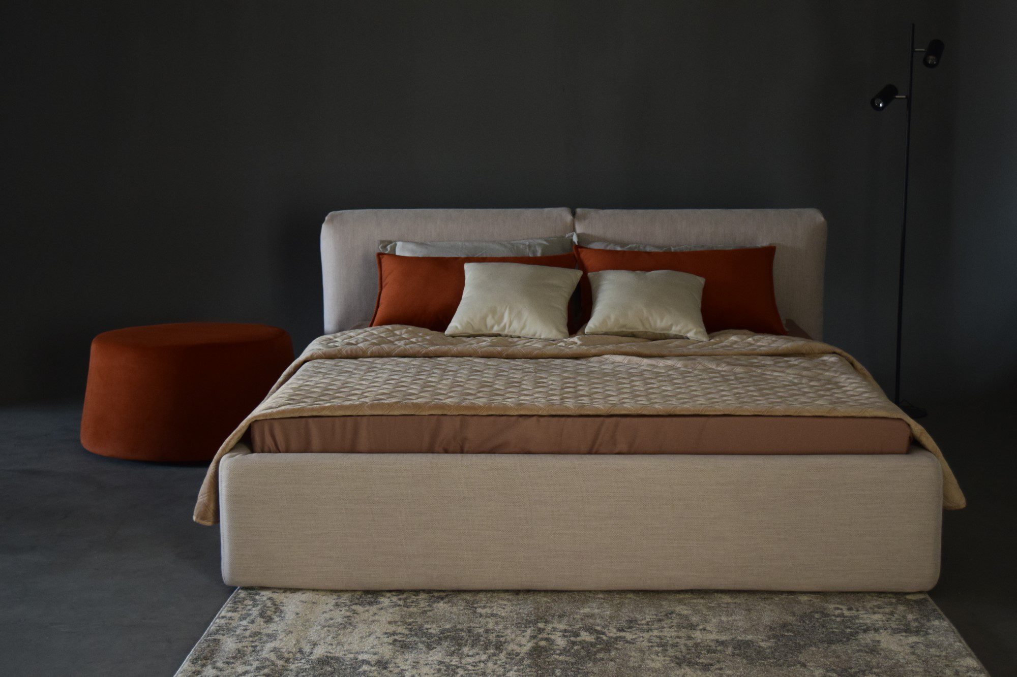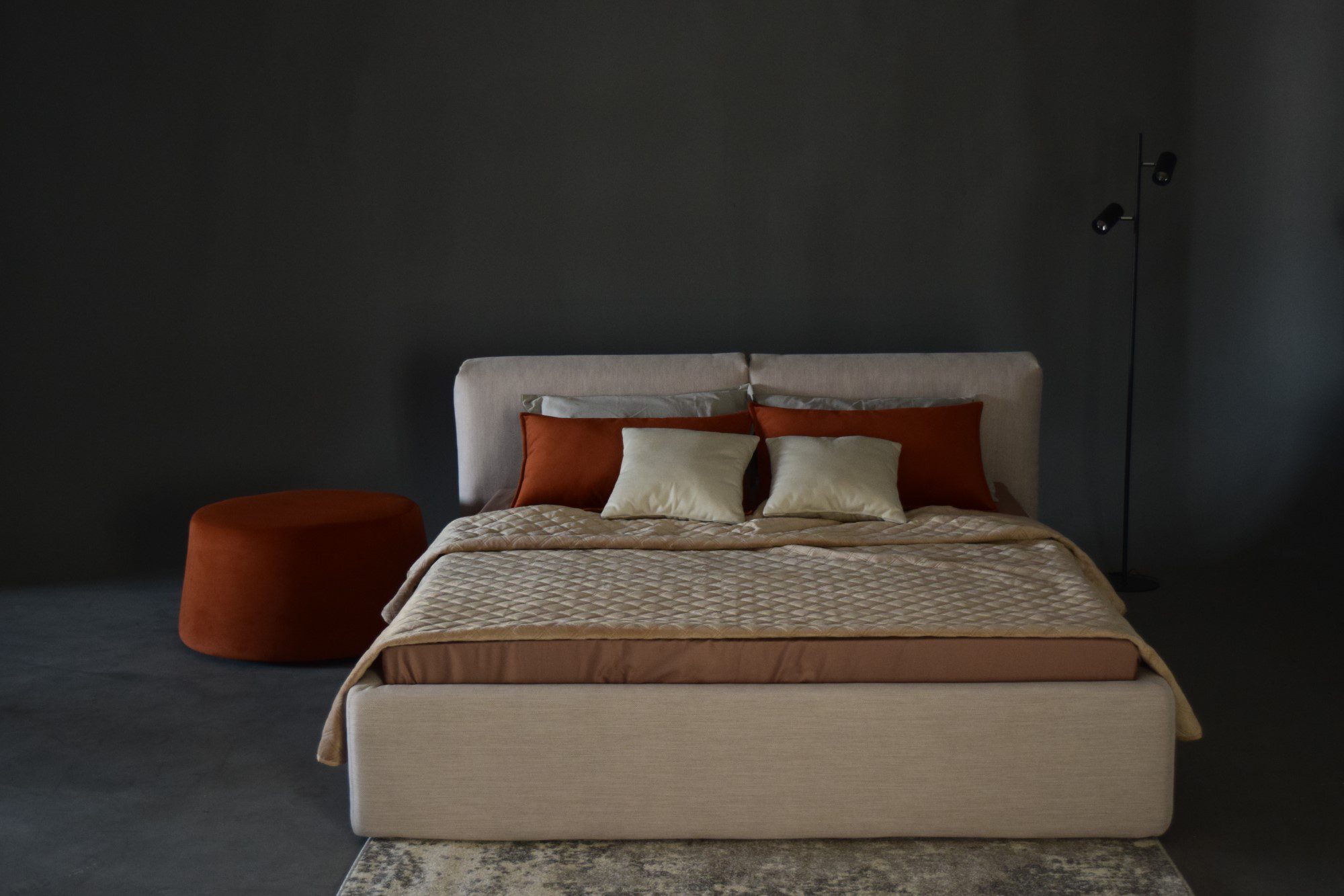 Patul Savona este ideal atât pentru interioarele minimaliste, cât și pentru cele moderne, subliniind gustul rafinat al proprietarului. Materialul textil plăcut la atingere, combinația stilată de perne cu accente vibrante și lenjeria de pat în tonuri neutre creează o atmosferă de relaxare și confort.
