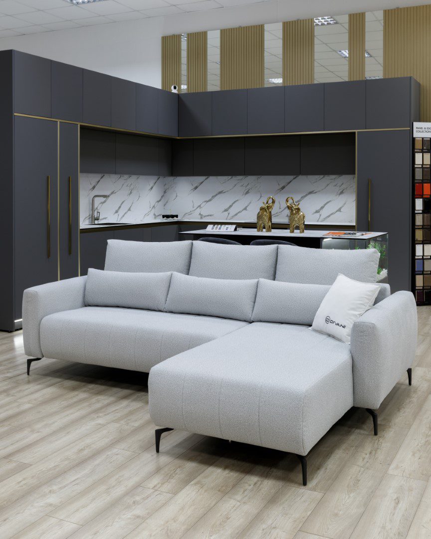 Использование: Угловой диван BELLISA идеально подходит для современных гостиных, предлагая комфортное место как для сидения, так и для сна.