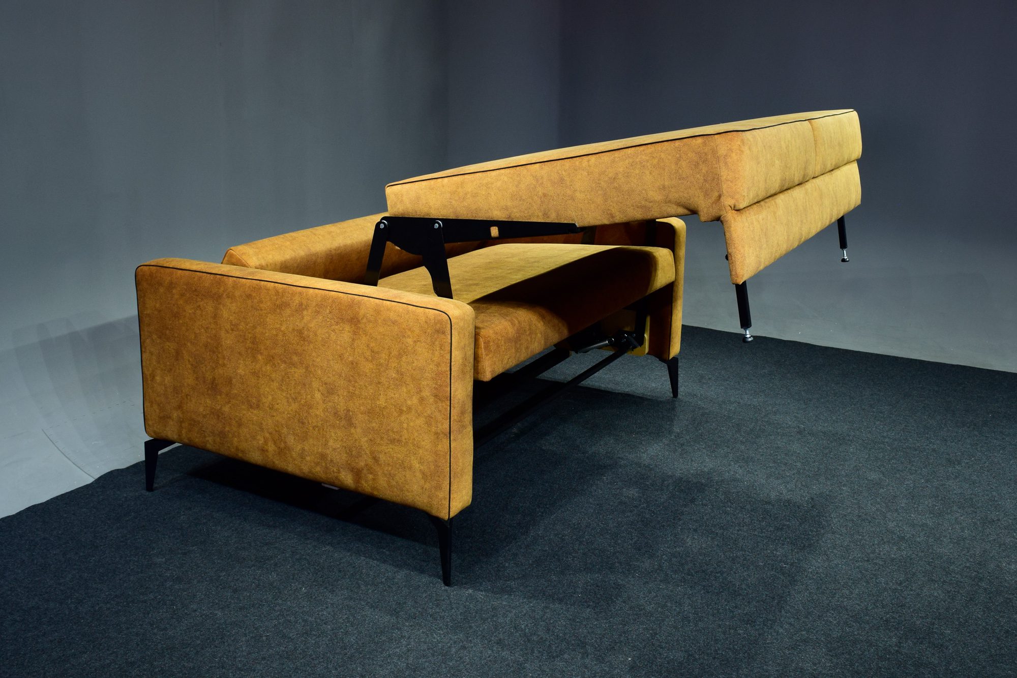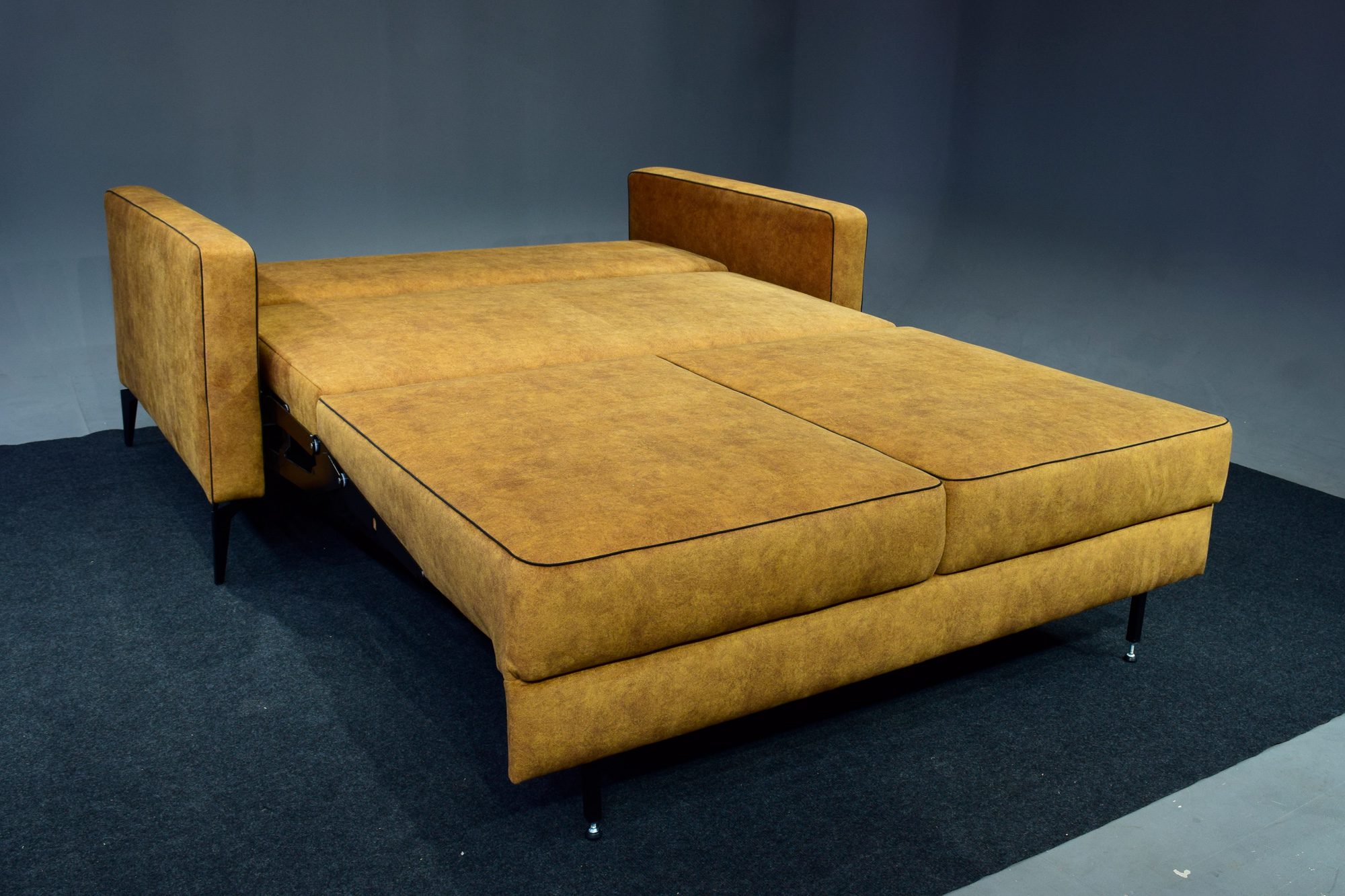 Модель отличается качественной обивкой из ткани премиум-класса Teddy 110, которая обладает мягкостью и высокой износостойкостью. Тёплый горчично-коричневый оттенок добавляет уют и акцент в любой интерьер. Просторное место для сна размером 140 х 210 см обеспечивает комфортный отдых для одного или двух человек. Компактные размеры в сложенном виде (164 х 102 см) делают его удобным даже для небольших помещений.